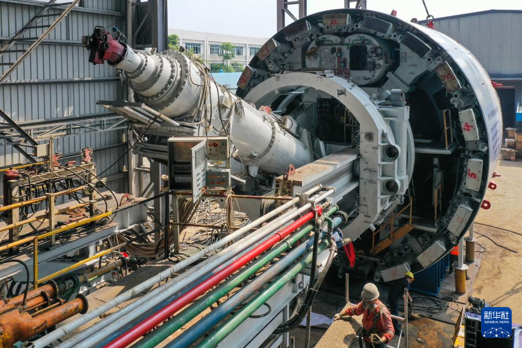 8月27日,施工人员在整备一台经过再制造的大直径盾构机的管线设备。这台2010年出厂的盾构机本已到报废年限,经过设备再制造,性能还得到进一步提升。