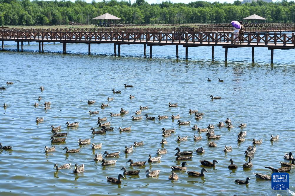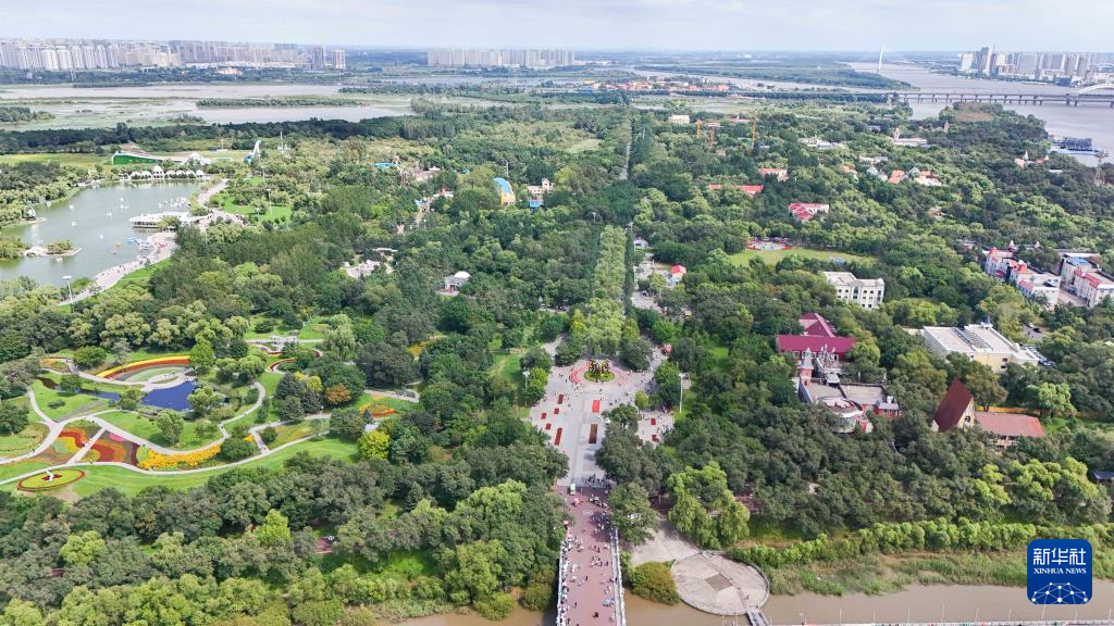 这是哈尔滨太阳岛国家湿地公园局部景色(8月20日摄,无人机照片)。