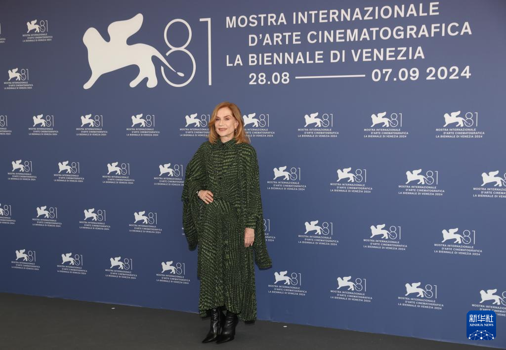 8月28日,在意大利威尼斯,第81届威尼斯电影节评委会主席、法国演员伊莎贝尔·于佩尔出席拍照式。