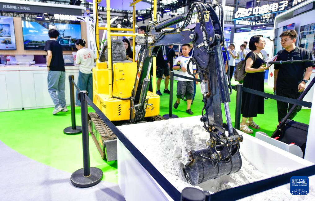 8月28日拍摄的在数博会上展出的一款智能机械设备。