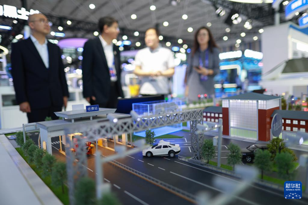 8月28日,观展者在2024中国国际大数据产业博览会现场参观城市智能时代基础设施模型。