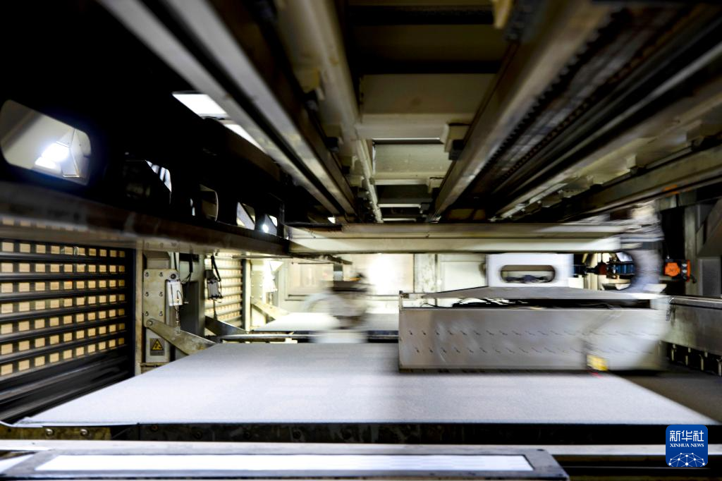 8月28日,在位于宁夏永宁工业园区的宁夏坚盾新材料有限公司生产车间,工作人员使用激光雕刻机加工铝单板。