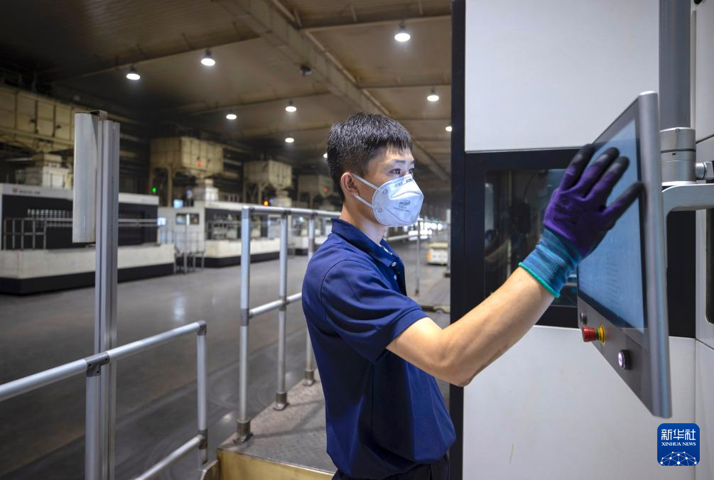 8月28日,在位于银川经济技术开发区的宁夏共享集团股份有限公司铸造3D打印智能工厂,工作人员操作3D打印机。
