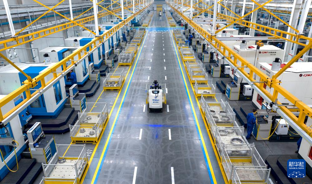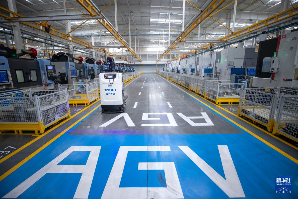 这是8月28日在位于银川经济技术开发区的银川威力传动技术股份有限公司机加车间拍摄的自动导向搬运车。