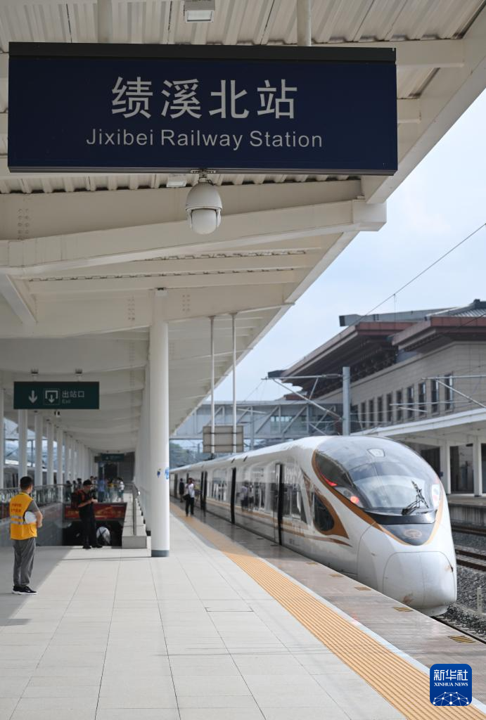 8月29日,宣绩高铁首趟试运行列车停靠在绩溪北站。