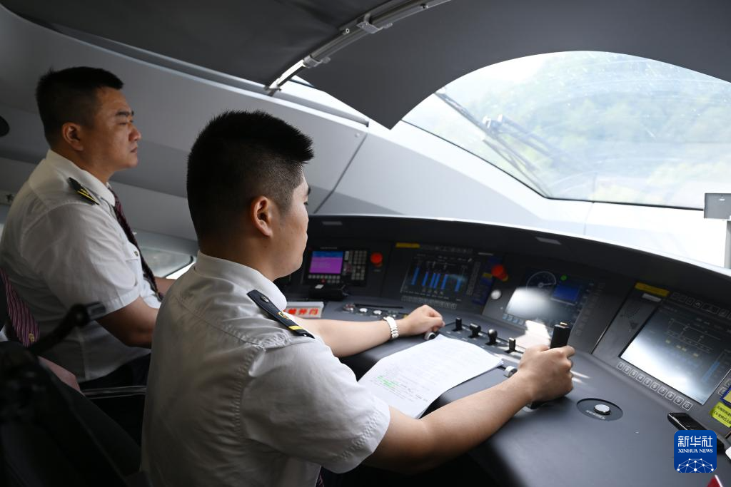 8月29日,高铁司机驾驶首趟试运行列车行驶在宣绩高铁线路上。