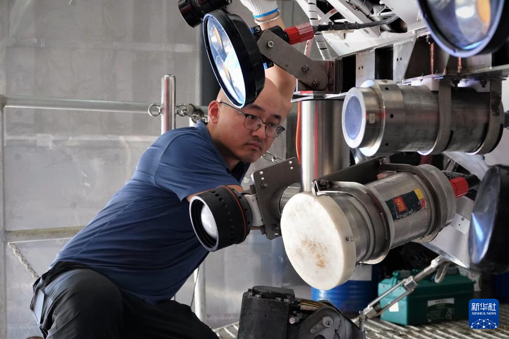 8月29日,“蛟龙号”大深度下潜前日,“蛟龙号”运维保障工程师王向鑫检查“蛟龙号”搭载的作业工具。