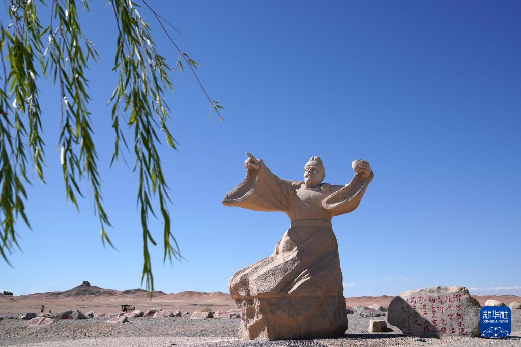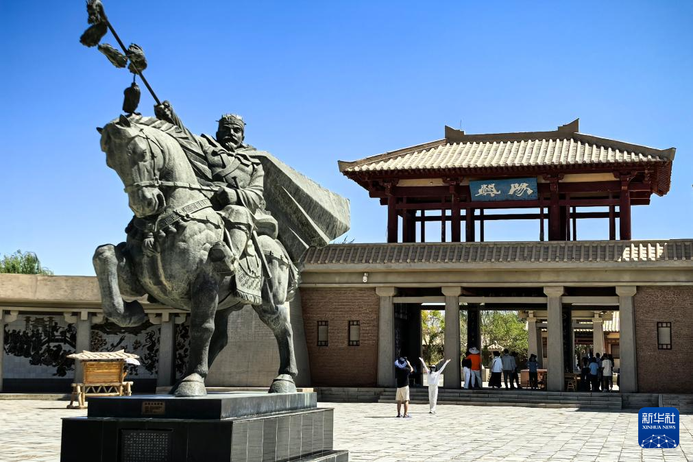 8月25日在甘肃省敦煌市阳关景区拍摄的张骞像。