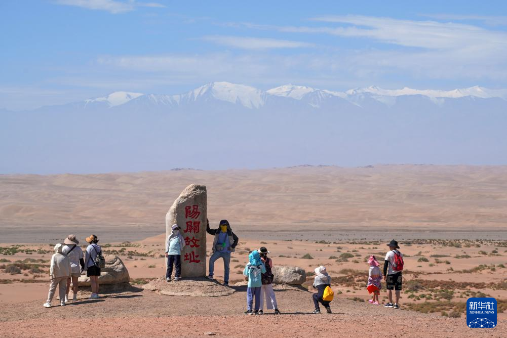 7月16日,游客在甘肃省敦煌市阳关景区参观游览。