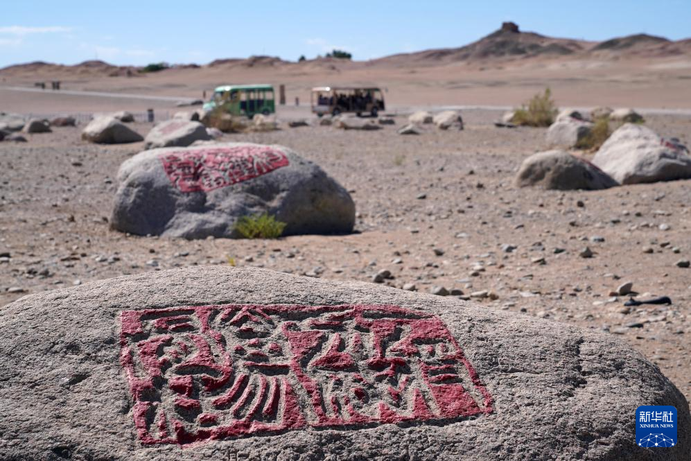 7月16日在甘肃省敦煌市阳关景区拍摄的石刻。