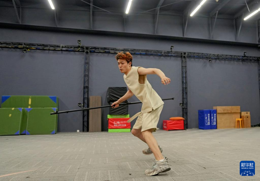 8月26日,在位于上海松江的动捕场地,殷凯在拍摄前练习动作。