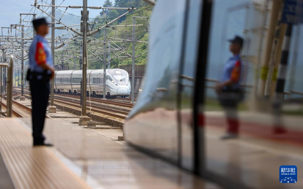 8月31日,一列动车组列车驶入沪昆高铁贵州铜仁南站。