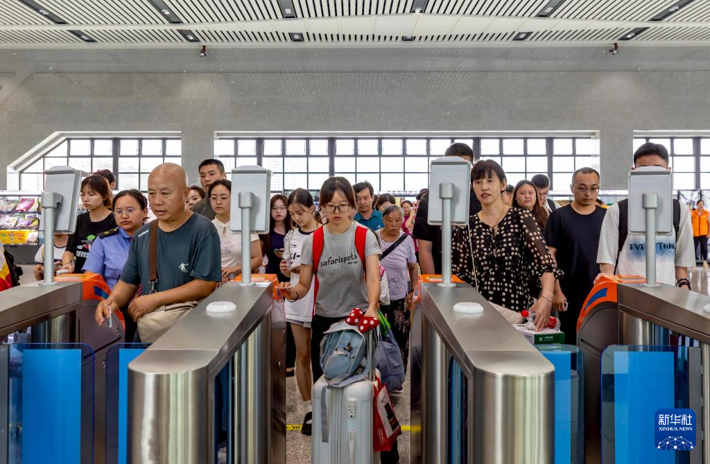 8月31日,旅客在贵州省黔西高铁站闸机口等待进站上车。