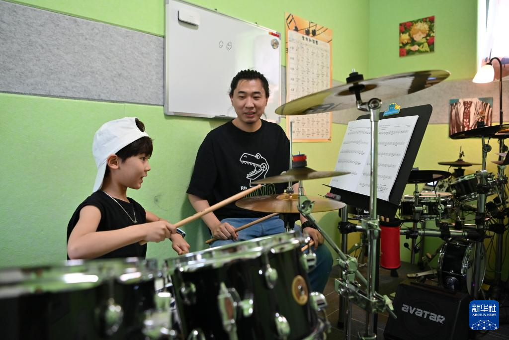 在天津市红桥区盖来普工业园,一家音乐培训机构的老师在给学员上课(8月30日摄)。
