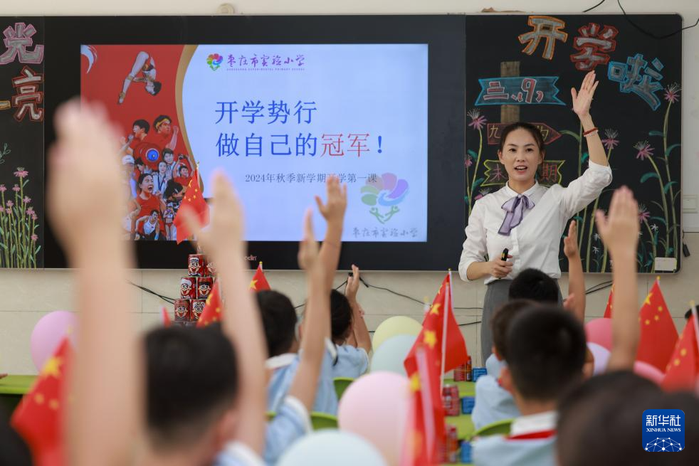 9月1日,山东省枣庄市实验小学的学生在上开学第一课。