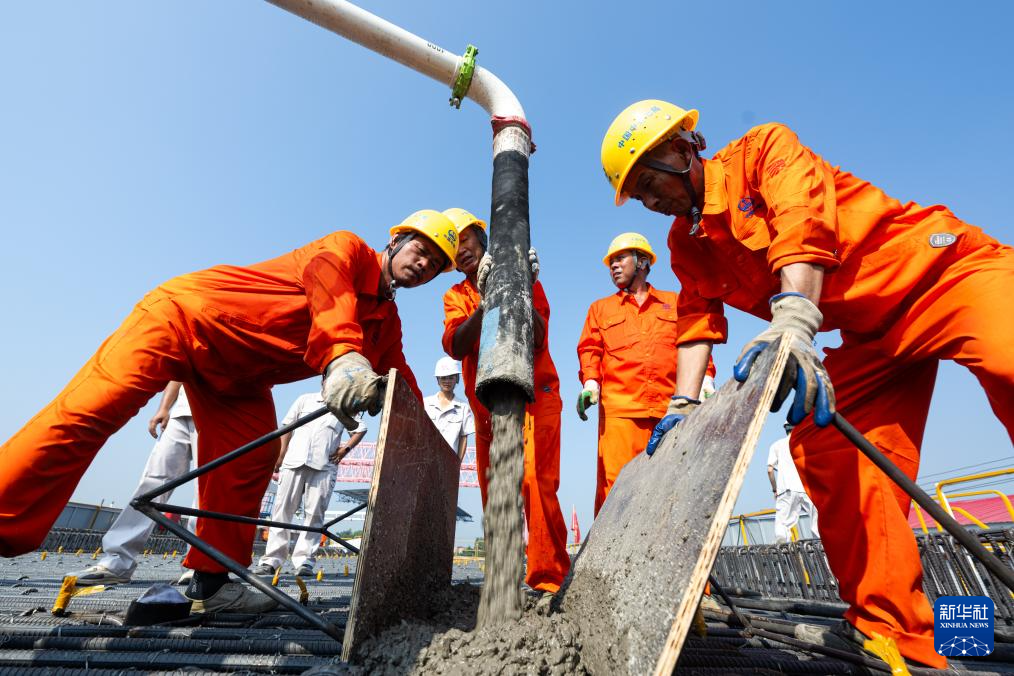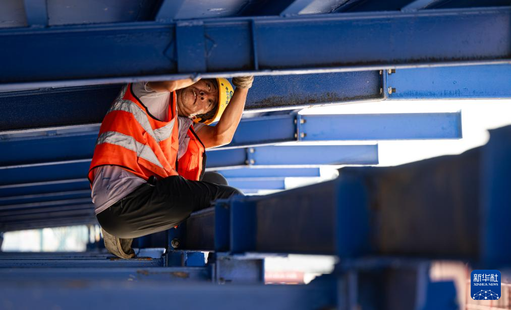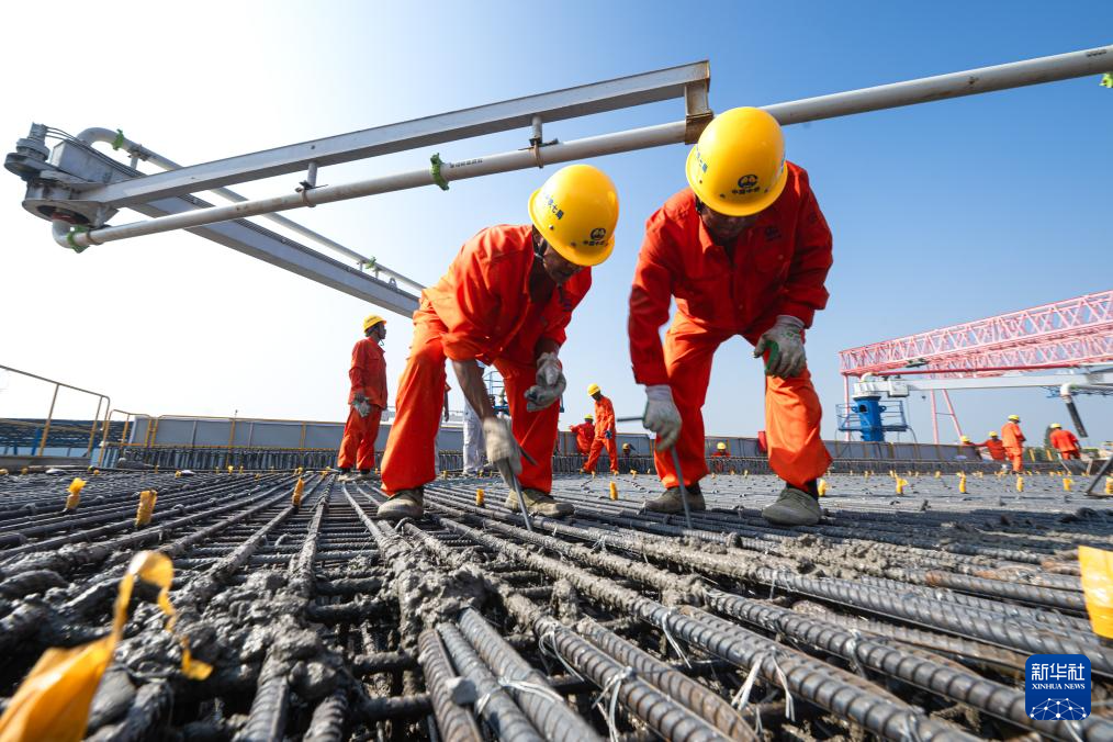 9月1日,中铁七局工人在合武高铁湖北段站前5标前川制梁场施工作业。