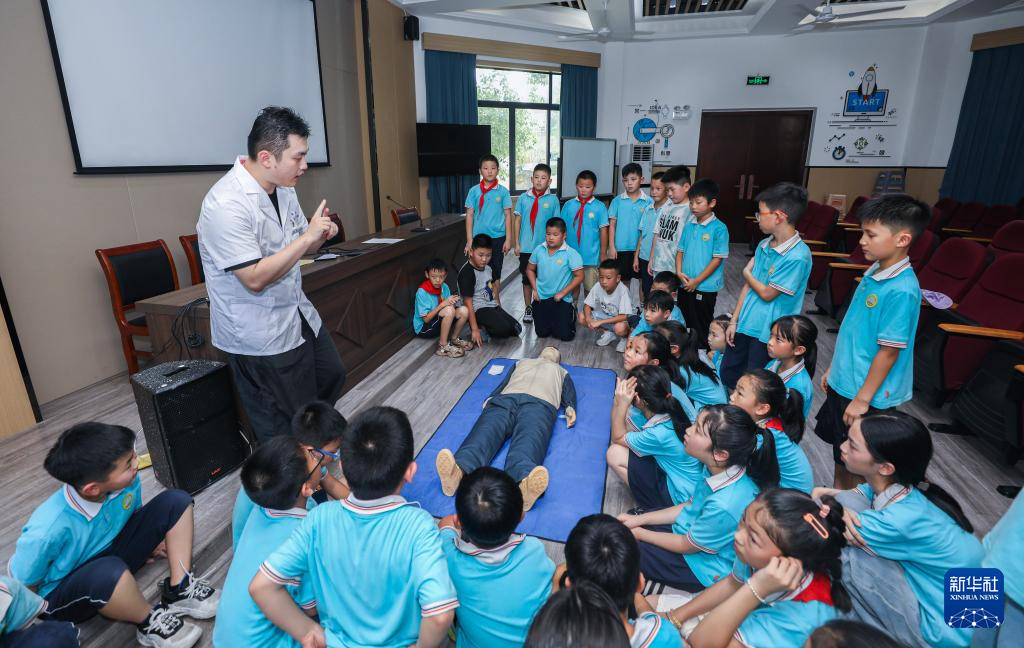 9月2日,东林镇卫生院医生在东林小学给学生普及应急救护知识。
