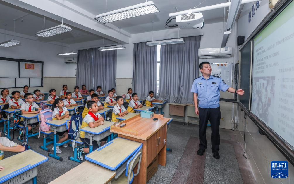 新学期伊始,浙江省湖州市吴兴区东林镇派出所、司法所、应急消防管理站、卫生院等多个部门联合各中小学开展“开学第一课,安全记心间”主题教育活动,增强学生们的安全意识。