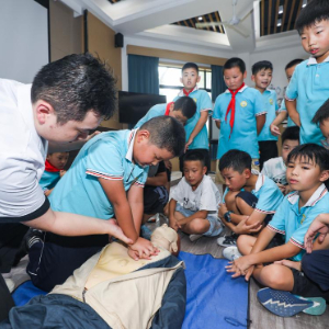 9月2日,东林镇卫生院医生在东林小学开展应急救护知识普及课堂。