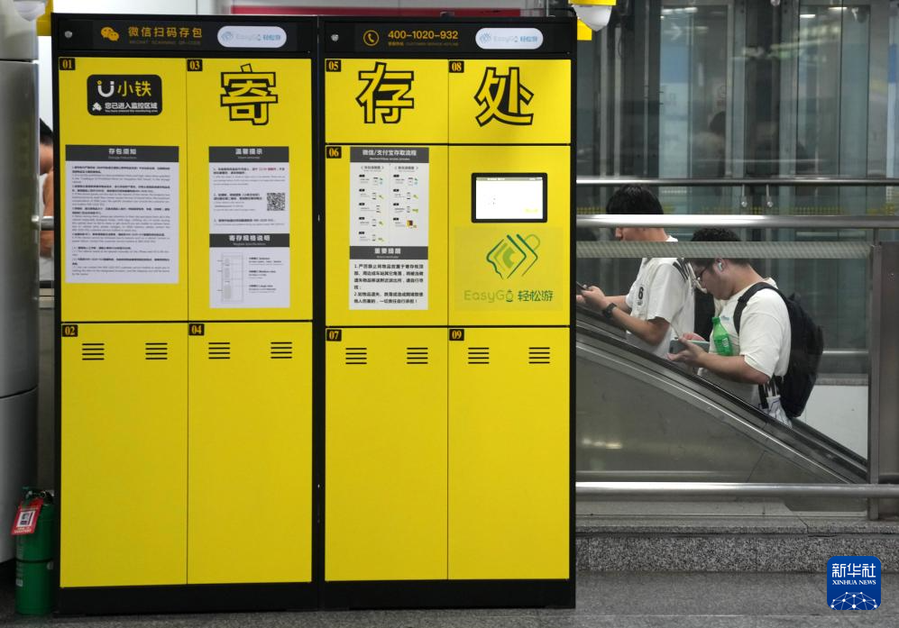 9月2日,一名来自北京的游客将行李存入杭州地铁5号线城站站的自助寄存柜内。