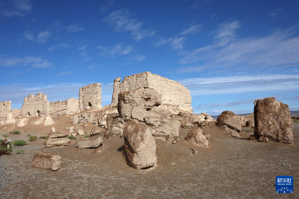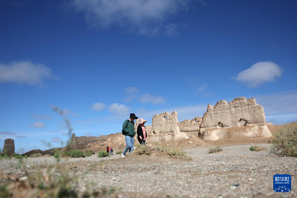 当日,一场降雨过后,位于敦煌市区90公里外的大方盘城在蓝天白云下更显雄浑苍凉,与戈壁大漠组成一道壮美风景。