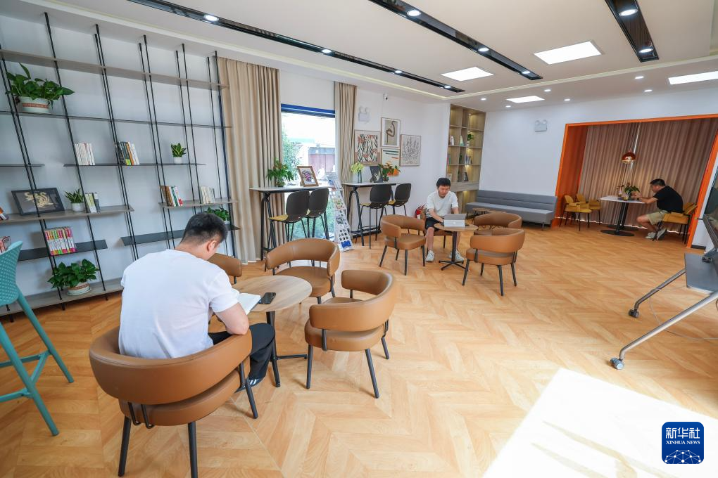 这是9月4日拍摄的嘉兴市秀洲区高照街道新义村内蓝领共享客厅。这里可以供企业员工喝茶、阅读、休息。