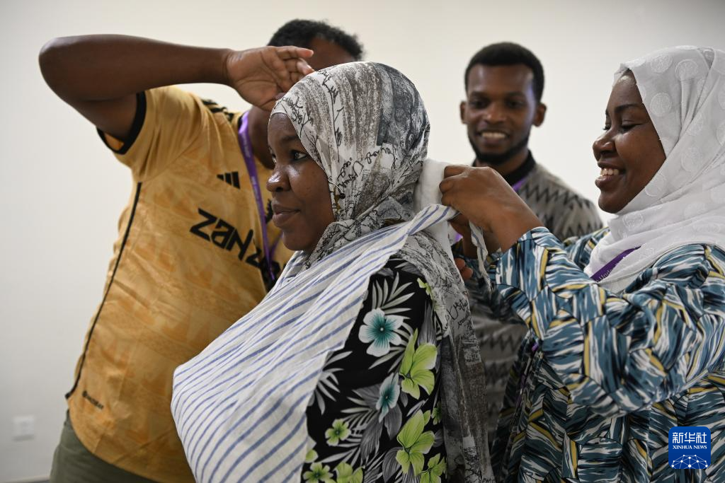 9月4日,江苏省人民医院医生袁超(前中)指导研修班学员进行上肢固定操作。