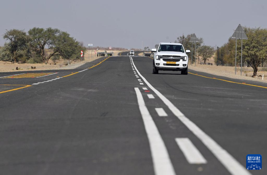 9月3日,在纳米比亚南部城镇策斯,车辆行驶在修复后的B1高速公路路段上。