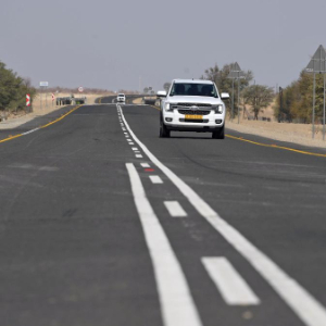 3日,在距离纳米比亚首都温得和克420公里的南部城镇策斯,举行了纳交通大动脉B1高速公路基特曼斯胡普至马林塔尔第一标段88公里道路修复项目的通车仪式。