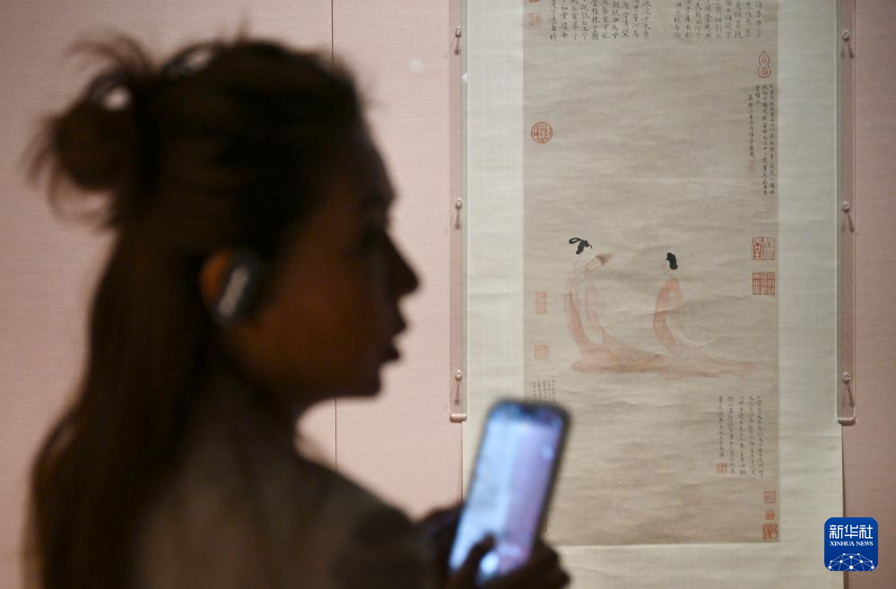 9月4日,参观者在北京故宫博物院观看文徵明湘君湘夫人图轴。