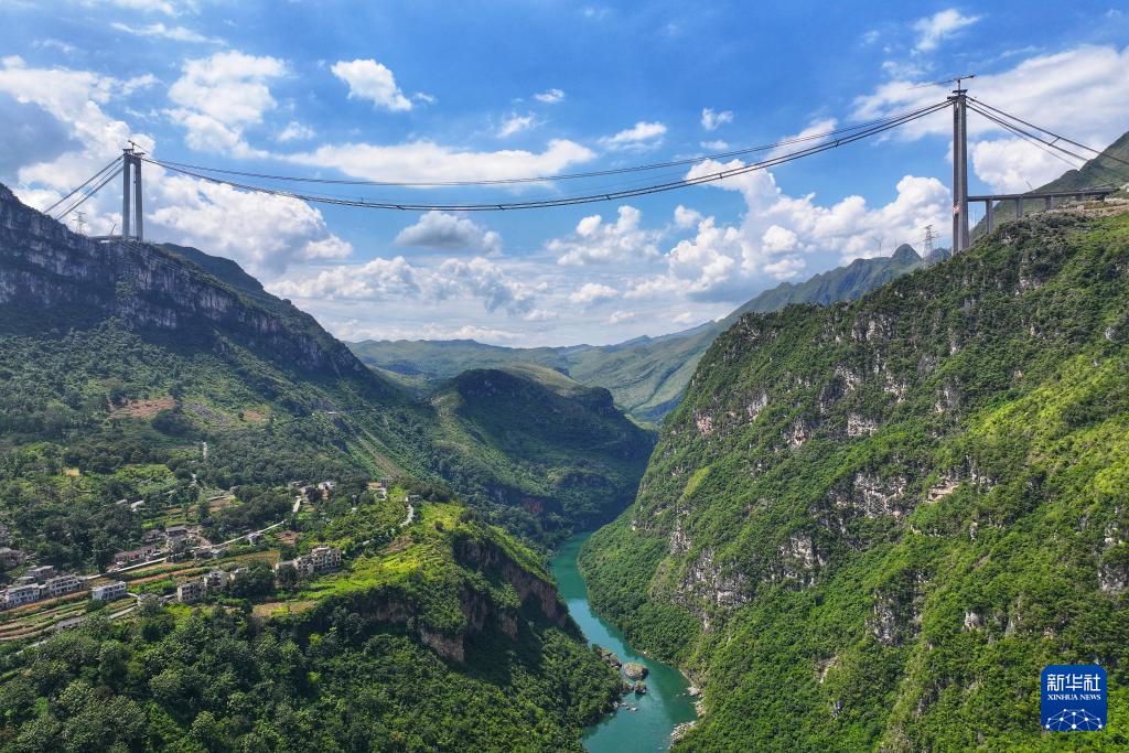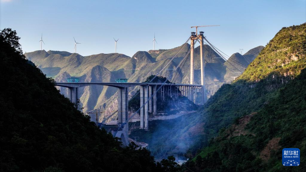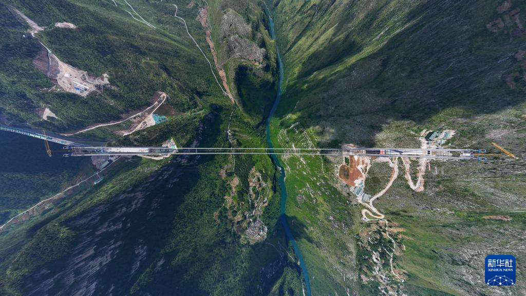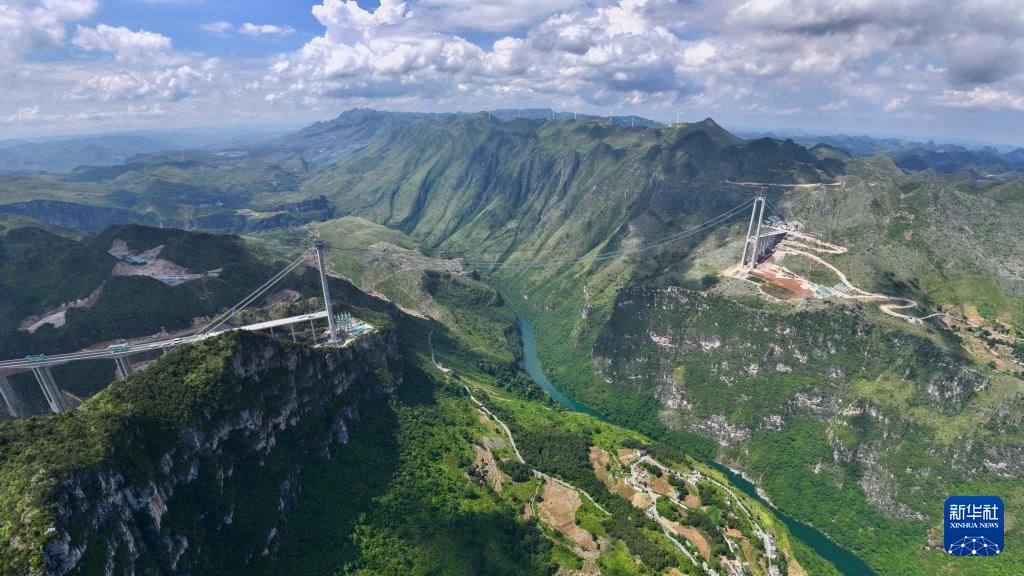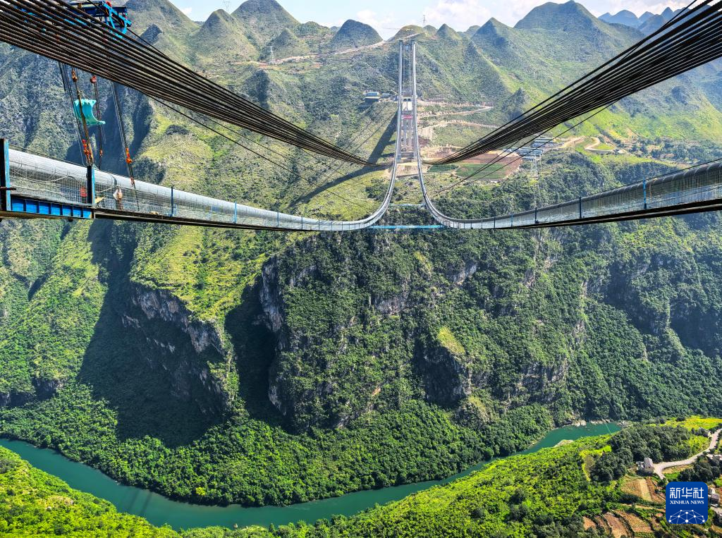 这是建设中的花江峡谷大桥(9月3日摄)。