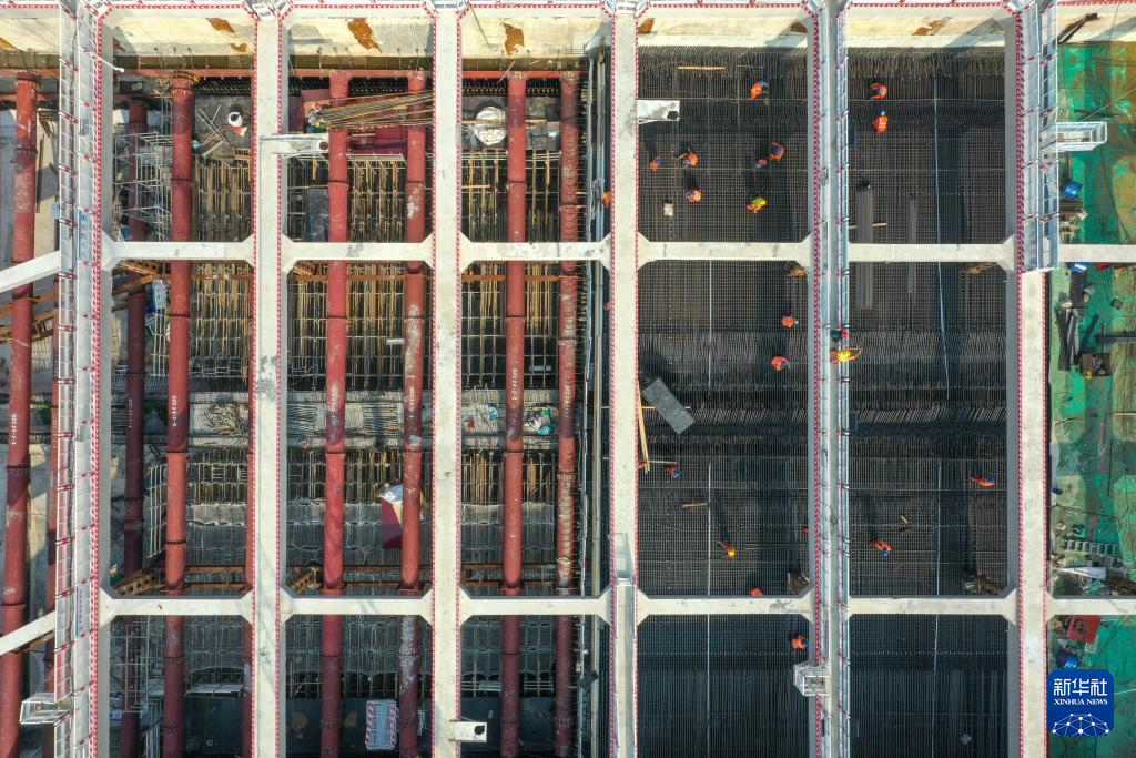 9月4日,工人在海太长江隧道北段始发井作业(无人机照片)。海太长江隧道项目位于苏通大桥下游约8公里,北接南通海门、南连苏州太仓、常熟;起点与G40沪陕高速公路相接,终点与G4221沪武高速公路相接,路线全长39.070公里,其中过江隧道长11.185公里。全线采用双向6车道高速公路标准,设计时速100-120公里。