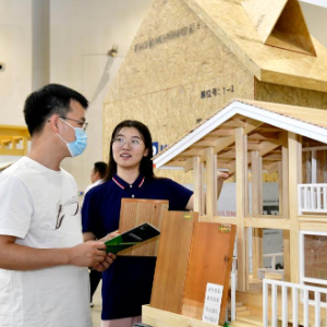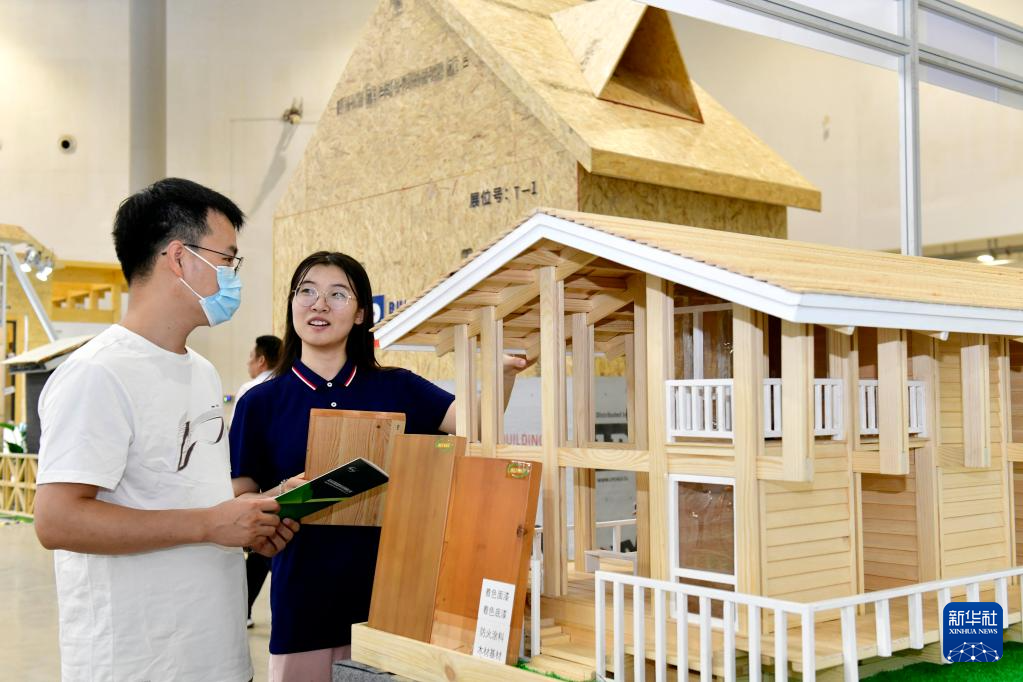 9月5日,观众在中国(日照)木结构和旅居产业展览会观展。