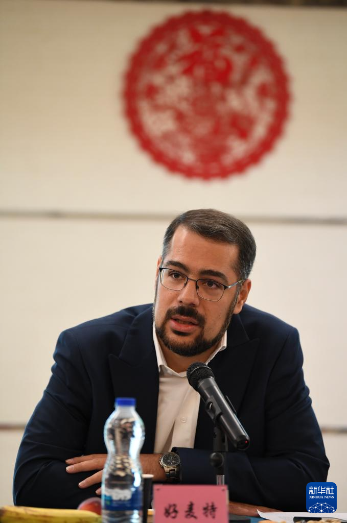 9月3日,在伊朗首都德黑兰,德黑兰大学外国语言文学学院教授、汉学家好麦特在“中文教学在伊朗”研讨会上发言。