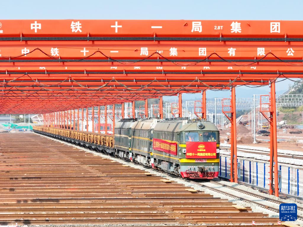 当日,一列运载500米长轨的列车抵达中铁十一局渝厦高铁重庆东站动车所铺轨基地,标志着渝厦高铁重庆东至黔江段进入长轨存储阶段,为后续铺轨工作奠定了基础。