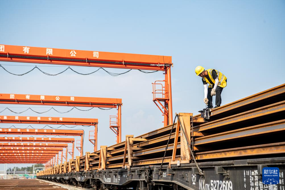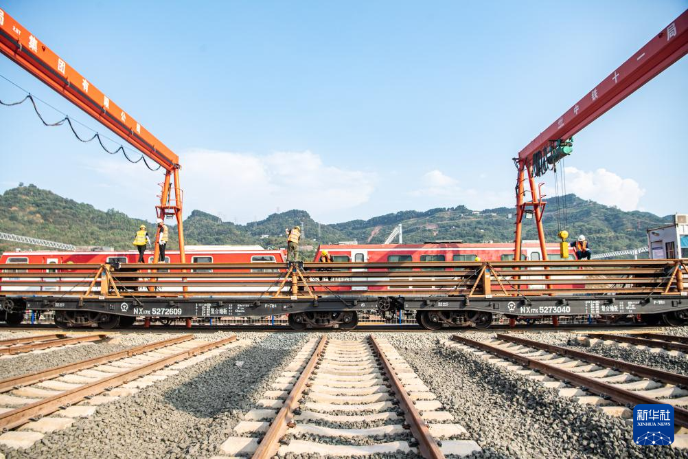 9月5日,运载500米长钢轨的列车抵达中铁十一局渝厦高铁重庆东站动车所铺轨基地。