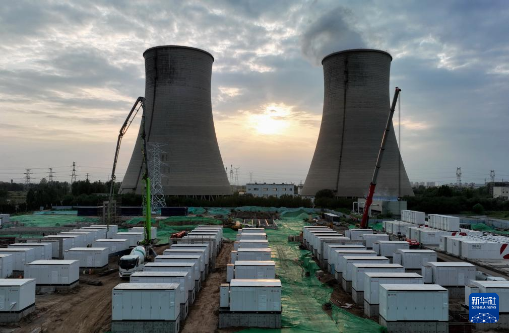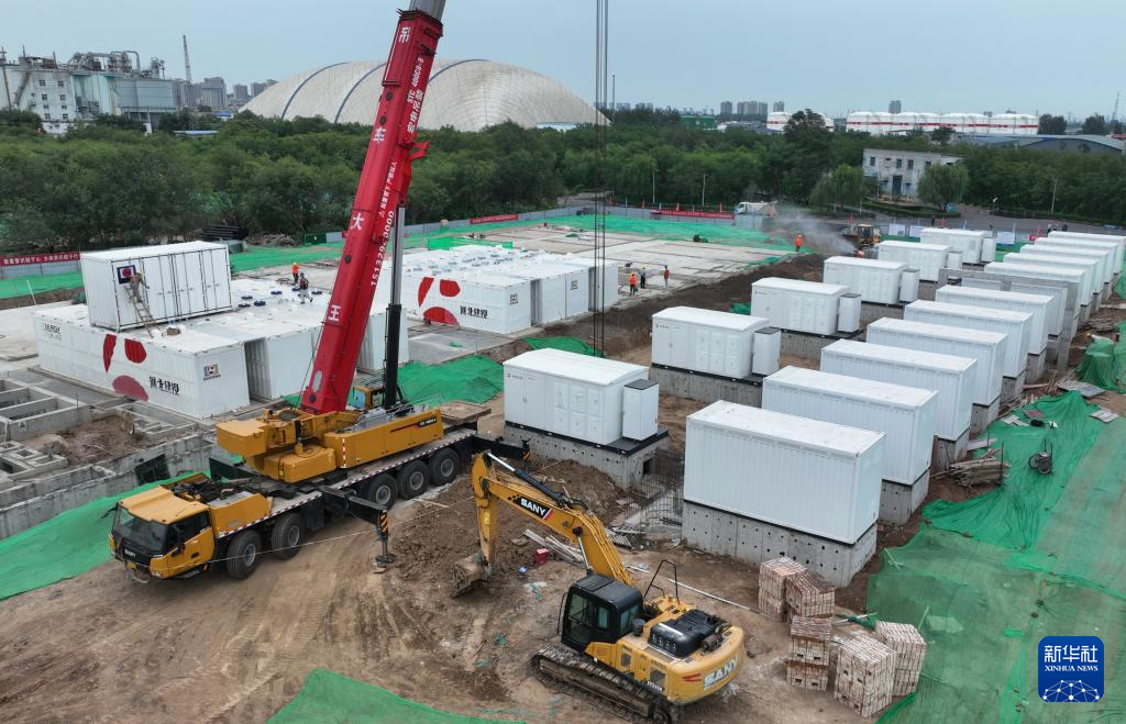 9月6日,工人在位于河北省邢台市信都区的新型电力系统示范工程——独立储能电站项目建设工地施工。