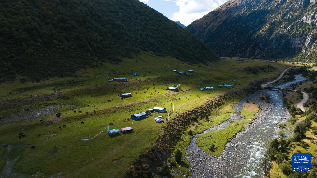 贡乔热旦家夏季牧场的全貌(无人机照片,9月4日摄)。