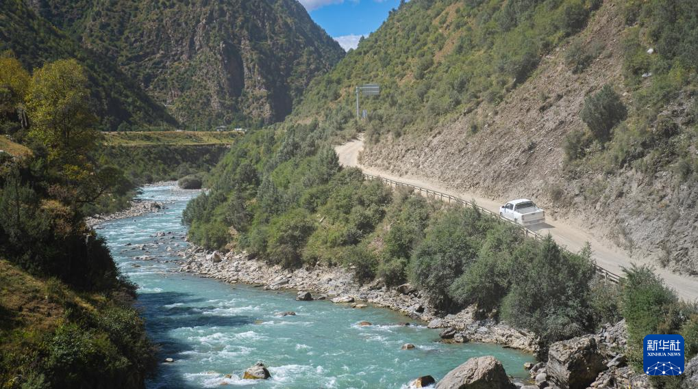 贡乔热旦家的汽车行驶在回家的山路上(9月4日摄)。