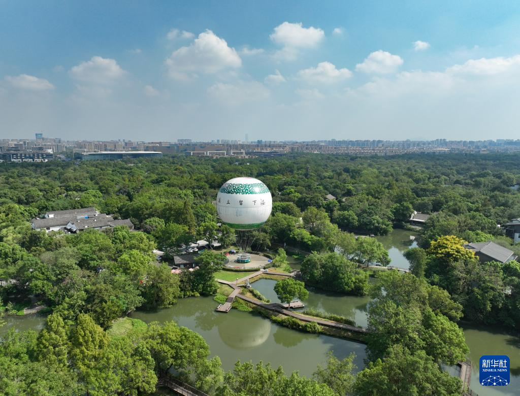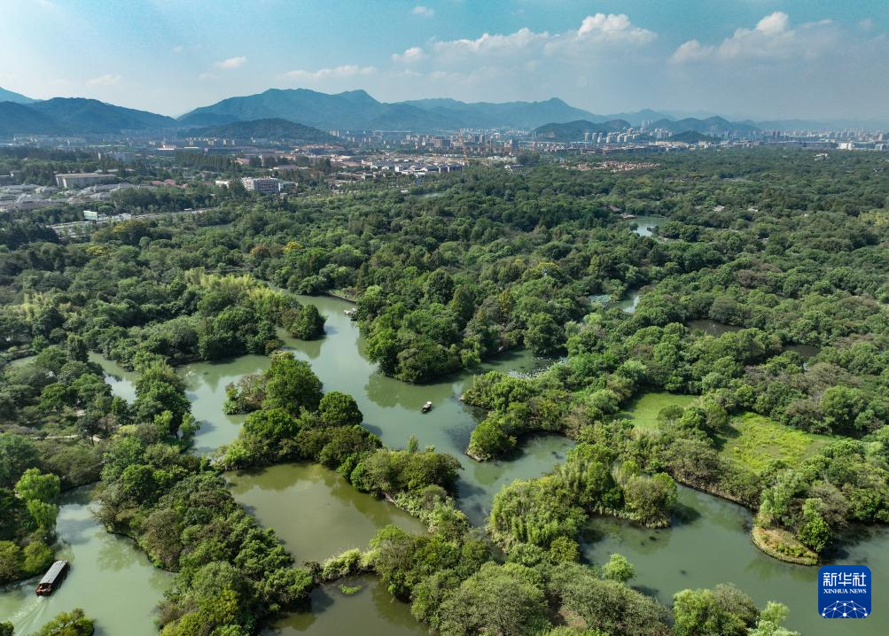 鸟瞰杭州西溪湿地(9月5日摄,无人机照片)。