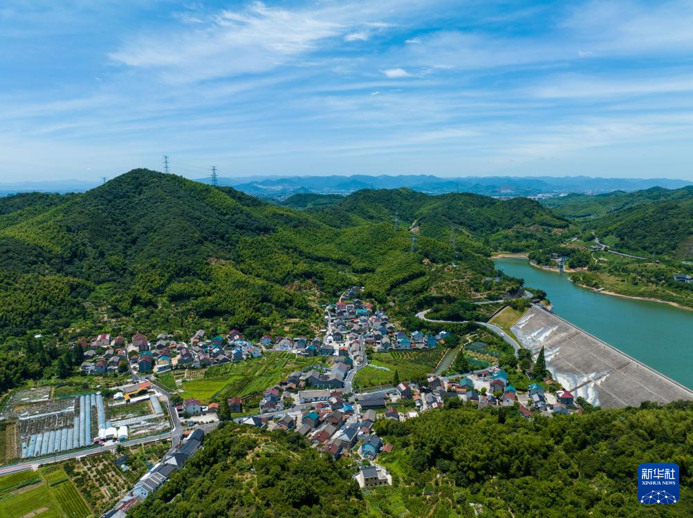 浙江宁波市江北区毛力村景色(7月23日摄,无人机照片)。