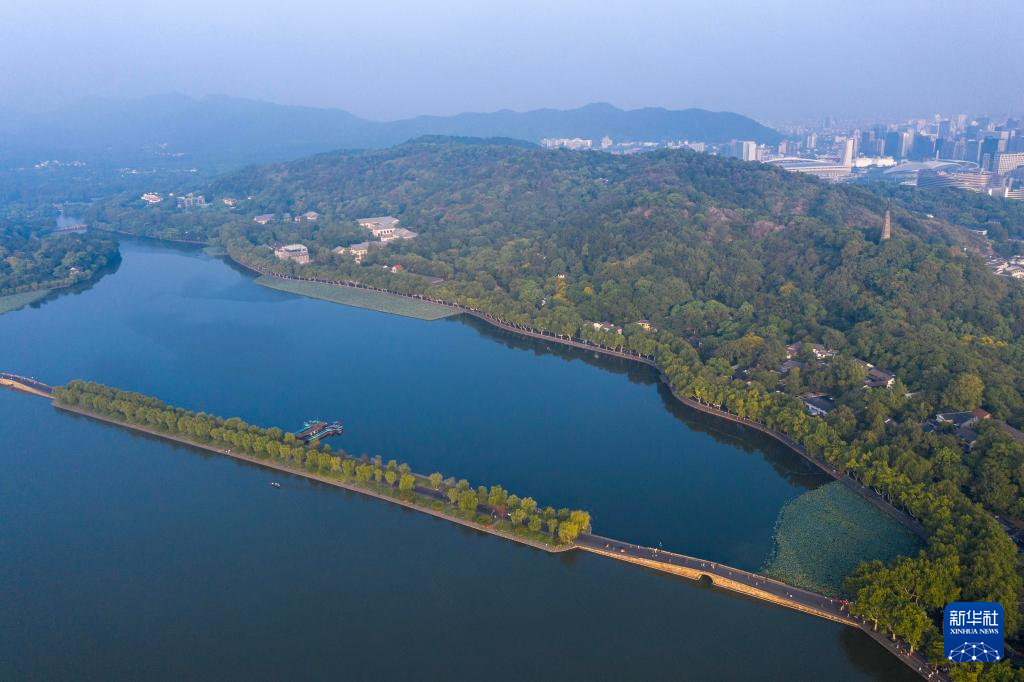 鸟瞰杭州西湖(9月6日摄,无人机照片)。