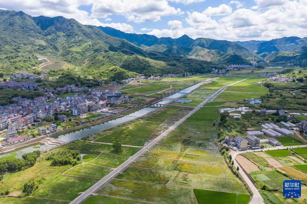 空中俯瞰浙江建德三都镇“稻鱼共生”养殖基地(7月30日摄,无人机照片)。