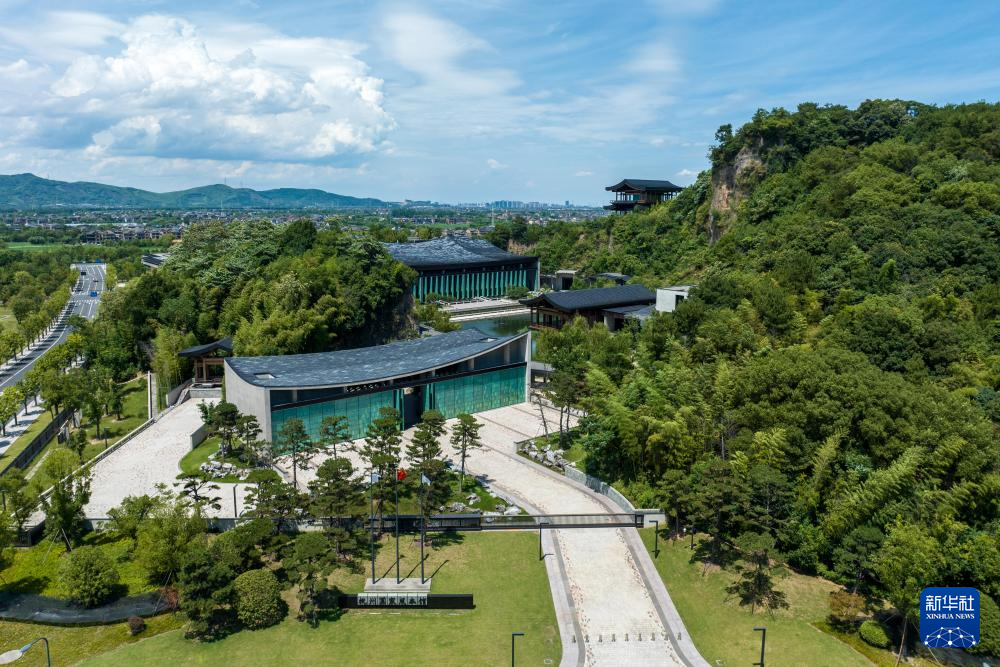 这是中国国家版本馆杭州分馆景色(7月18日摄,无人机照片)。