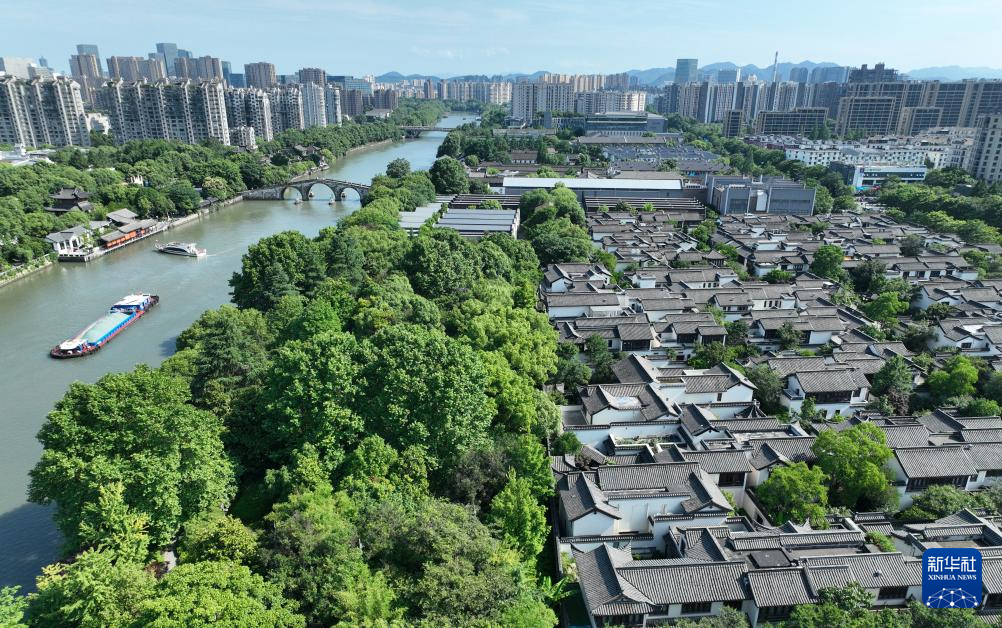鸟瞰京杭大运河杭州段(6月12日摄,无人机照片)。