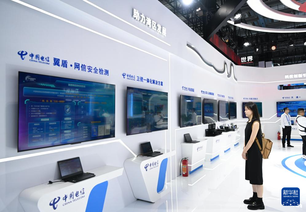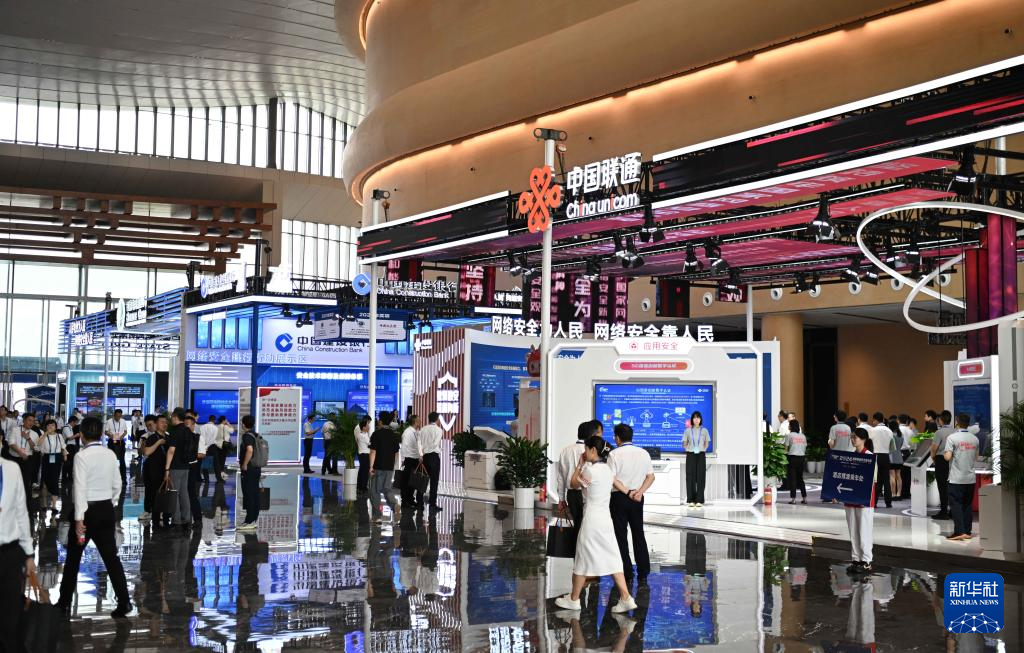 9月7日,人们在网络安全博览会上的企业展台前参观。