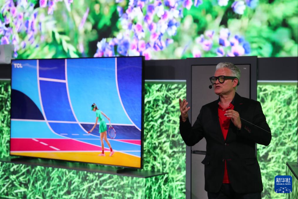 9月6日,在德国柏林国际消费电子展海信展区,参观者观看新款Mini LED电视。