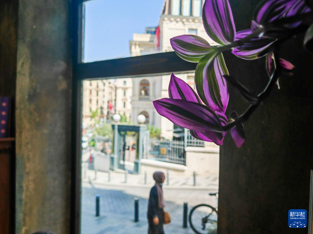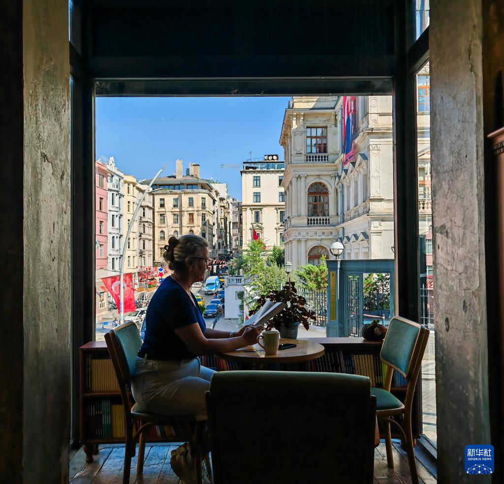 这是9月6日在土耳其伊斯坦布尔一家书店拍摄的窗边一景(手机照片)。