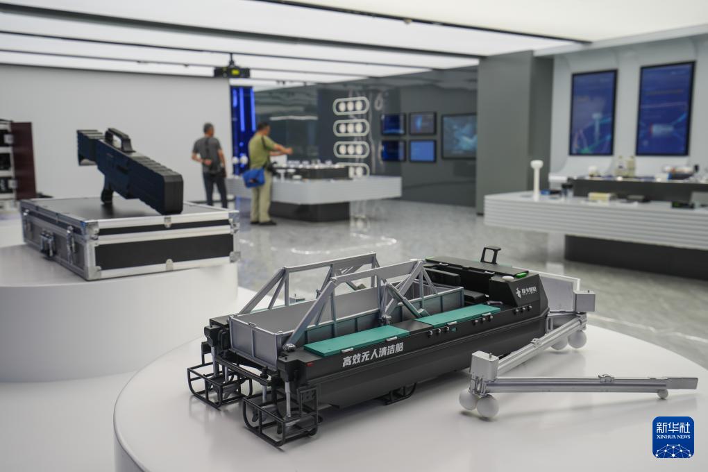 9月9日,在位于无锡的长三角空间信息数字产业特色示范园展示企业设计生产的无人清洁船模型。