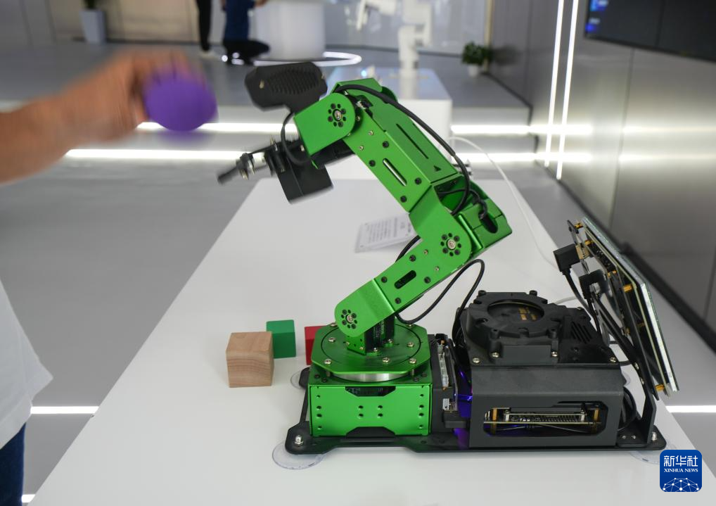 9月9日,在百度智能云千帆大模型(无锡)创新中心,工作人员演示操作视觉追踪机械臂。